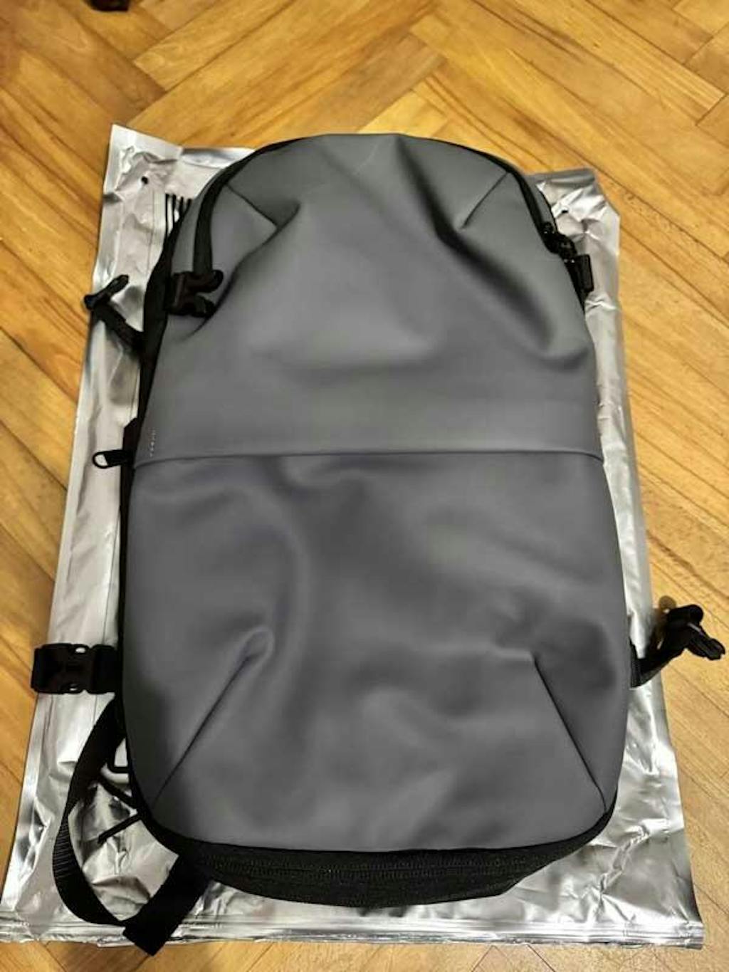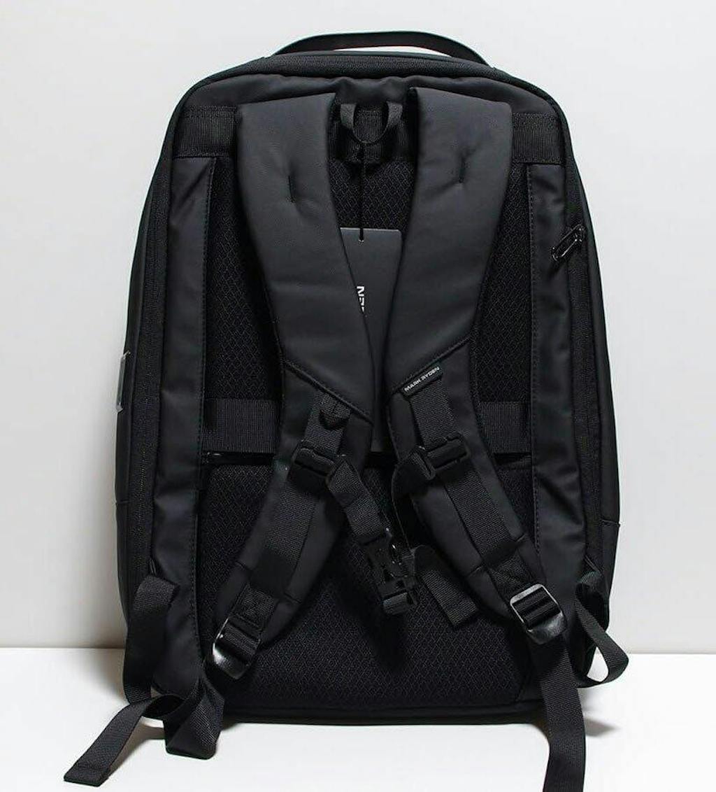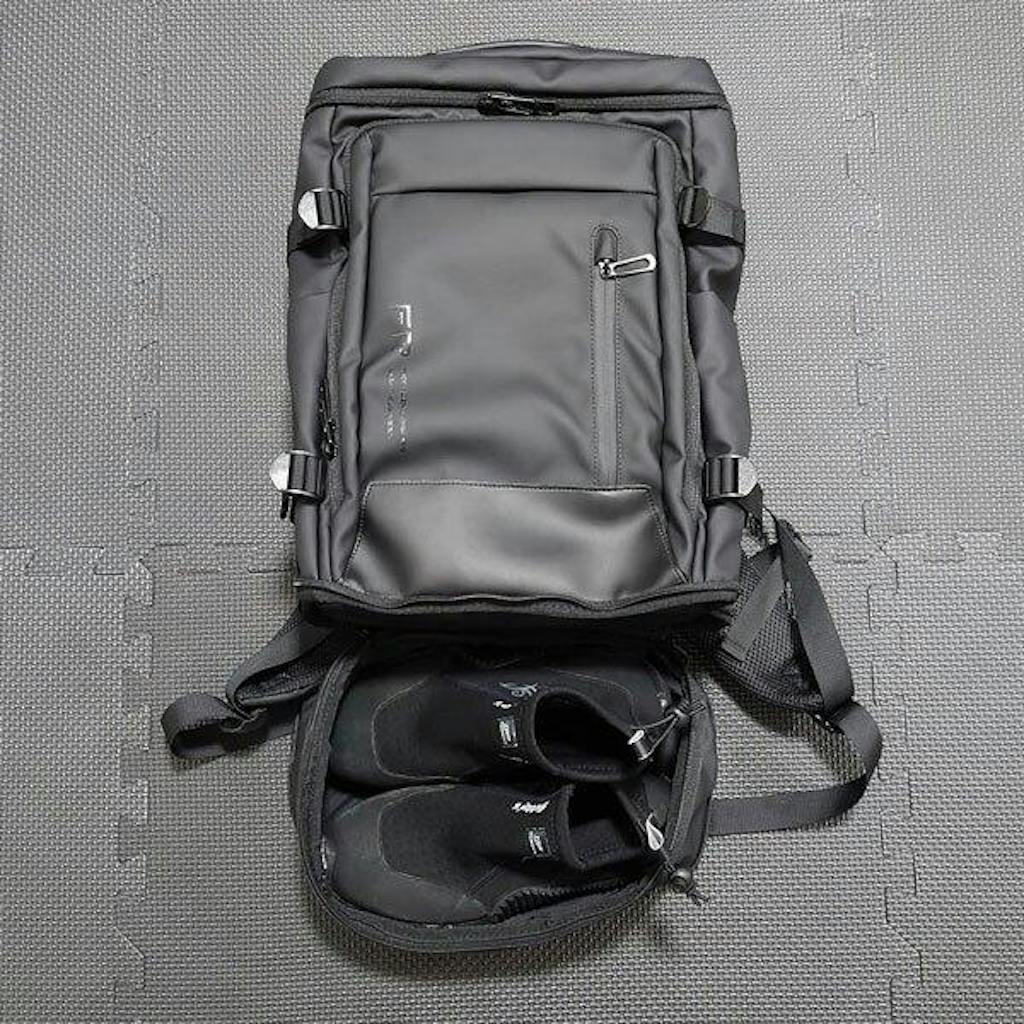 開封後の第一印象はシンプルに見た目がかっこいいなという感じ、少し重さがあるなと思いながらも(先ずは空っぽの状態で)背負ってみたところフィット感と持ちやすさから重量は感じませんでした。