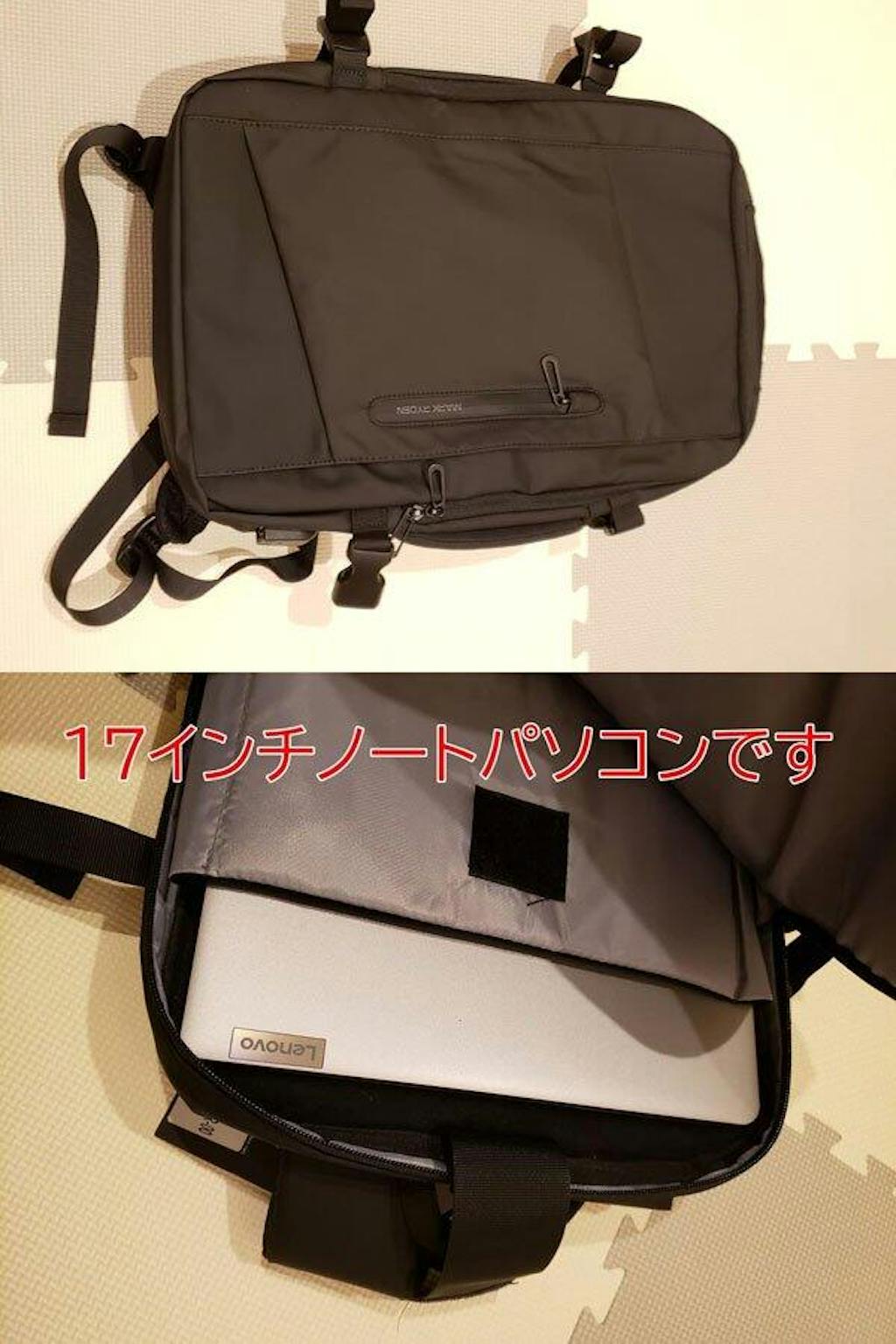レノボの17インチノートを使っているのでこのリュックにしました。