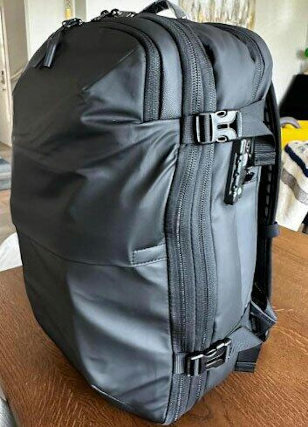 衣類圧縮できて実質かなり容量があり、TASロック付き、撥水加工と多機能。無難なデザインなので中長期の出張で重用してます。