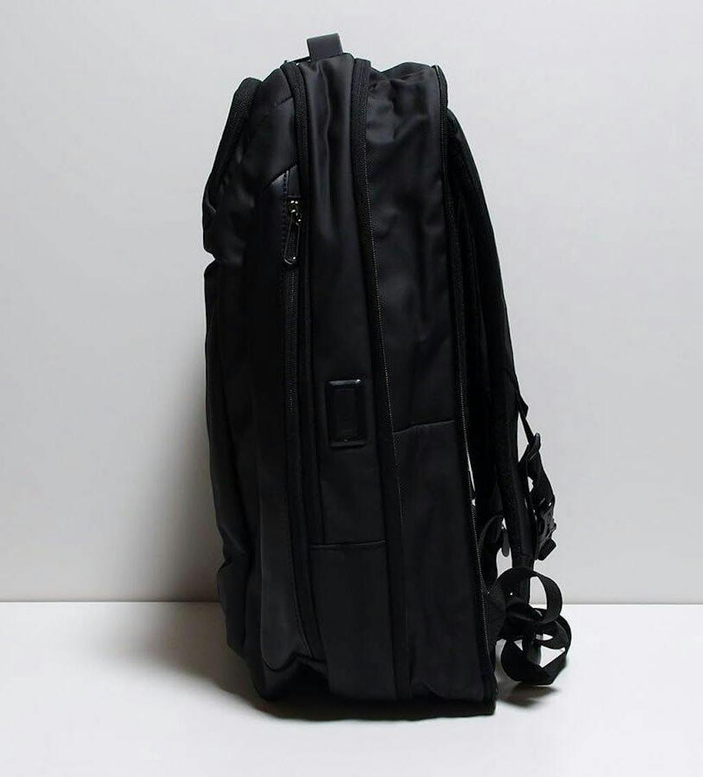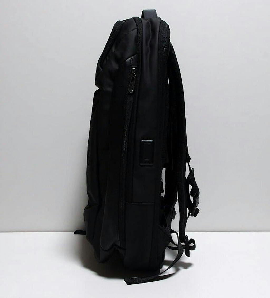 機能的には、普段使いにちょうどよいサイズ感で、ポケットが多いので、整然と荷物を収納でき、使い勝手のよいデザインです。容量も1泊程度の出張ならこのバックひとつで十分です。また、サイドのポケットは普段は目立たず,必要なときにすぐに使えて便利です。充電コネクターは使わないので両サイドともポケットにして欲しかったかな。