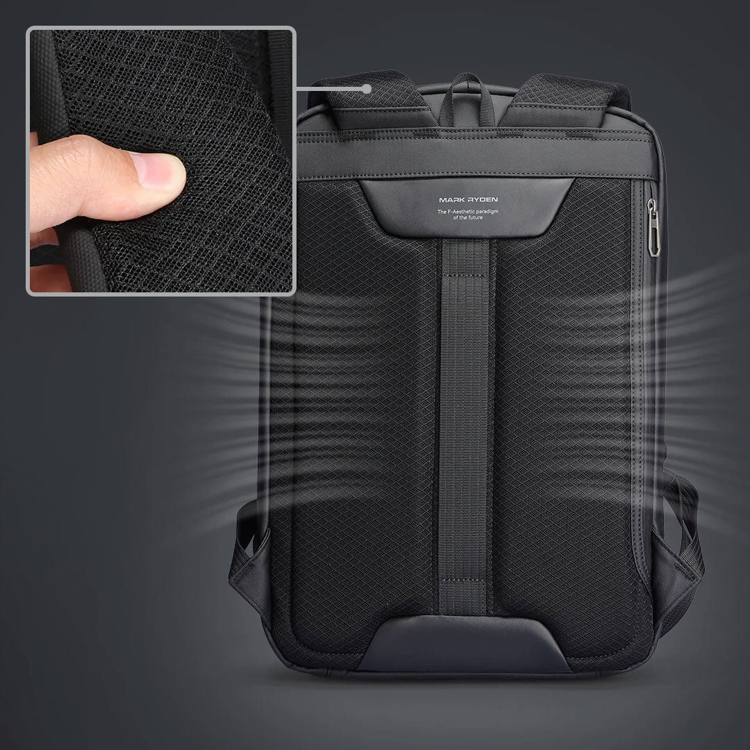 重さを分散する3D構造に加え、風を通すメッシュ素材が不快な背中の蒸れを解消。肩への負担を劇的に軽減し、夏場の通勤でも軽く爽やかな背負い心地が続きます。