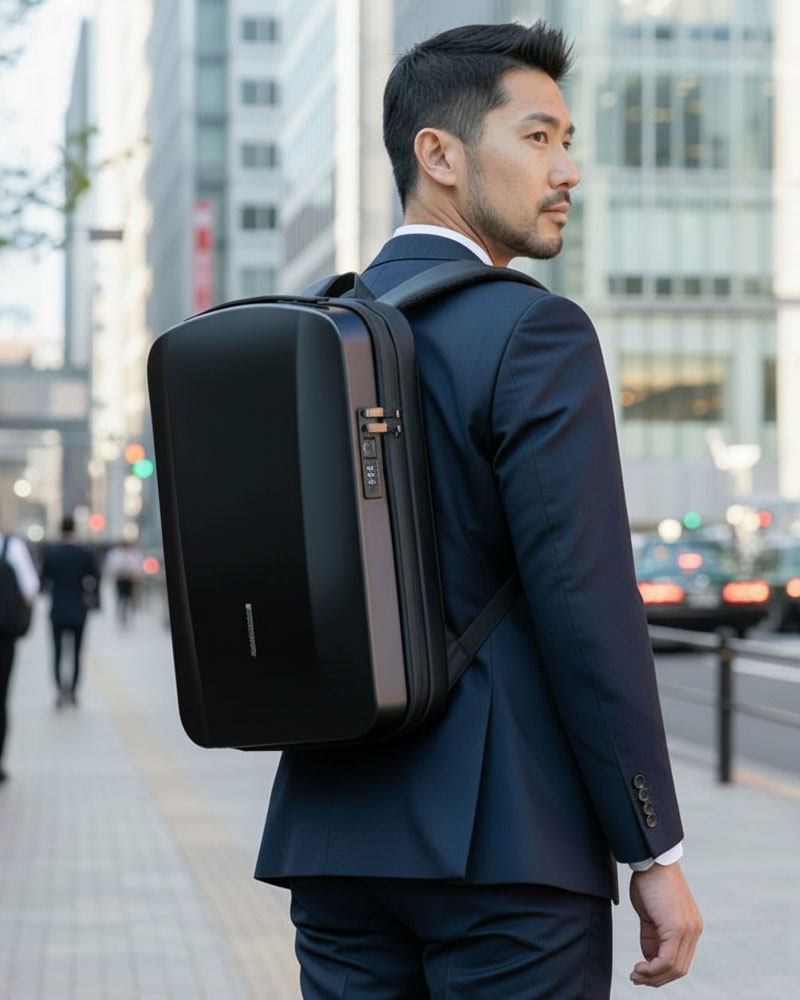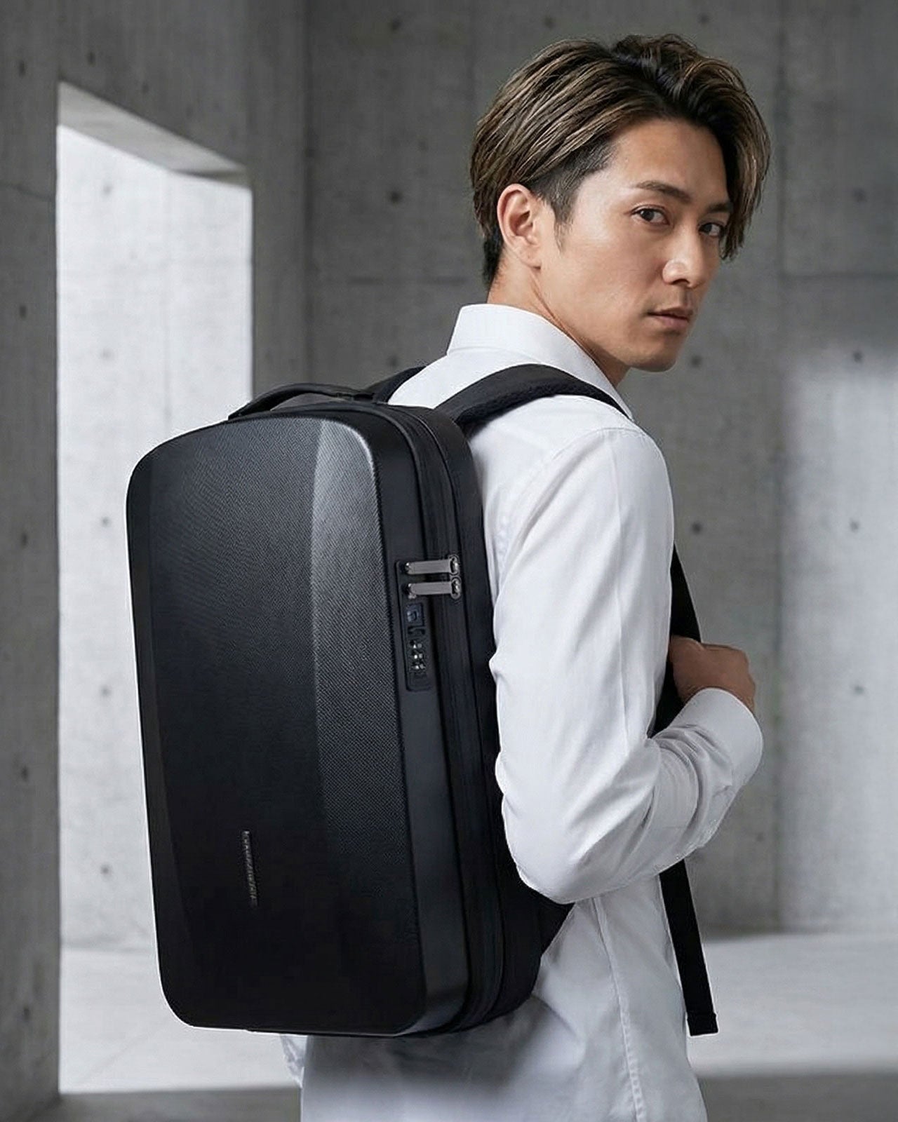 満員電車での通勤用に購入しましたが、期待通り薄くて邪魔にならず、何よりデザインがユニークで気に入っています。 今までのリュックは中身が少ないと型崩れしていましたが、これはハードシェルなので常にパリッとした綺麗なフォルムを維持してくれます。 中はガバっと開くので中身が見やすく、ポケットも多いのでPCや小物の整理が本当に楽になりました。 機能性も見た目も完璧で、会社で同僚に「どこのバッグ?」と聞かれるほど好評です。