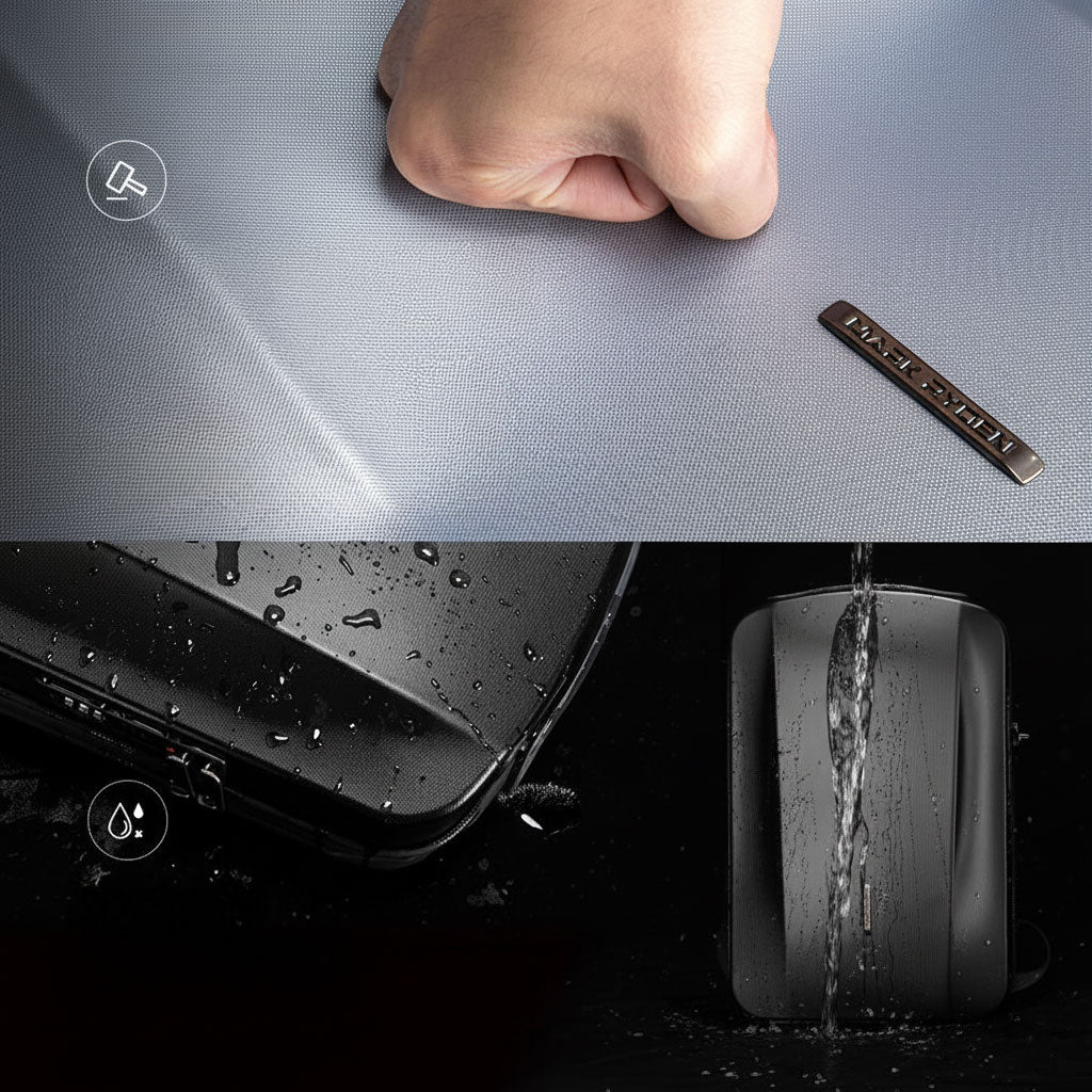 防水ハードシェルと多層クッションが、PC&大事な荷物を雨や衝撃から徹底ガード。万が一の時も大切なデータを守り抜く、絶対的な安心感を提供。