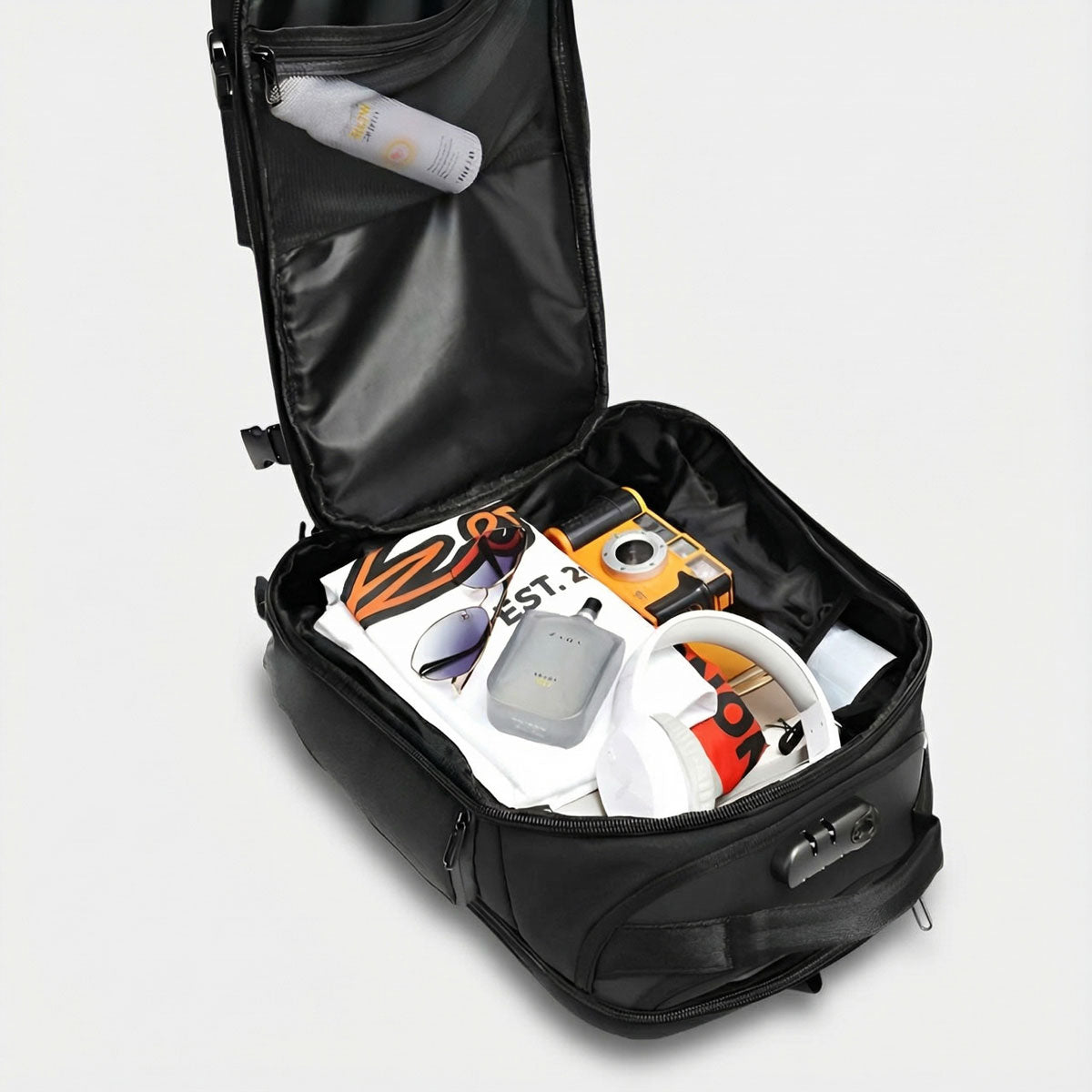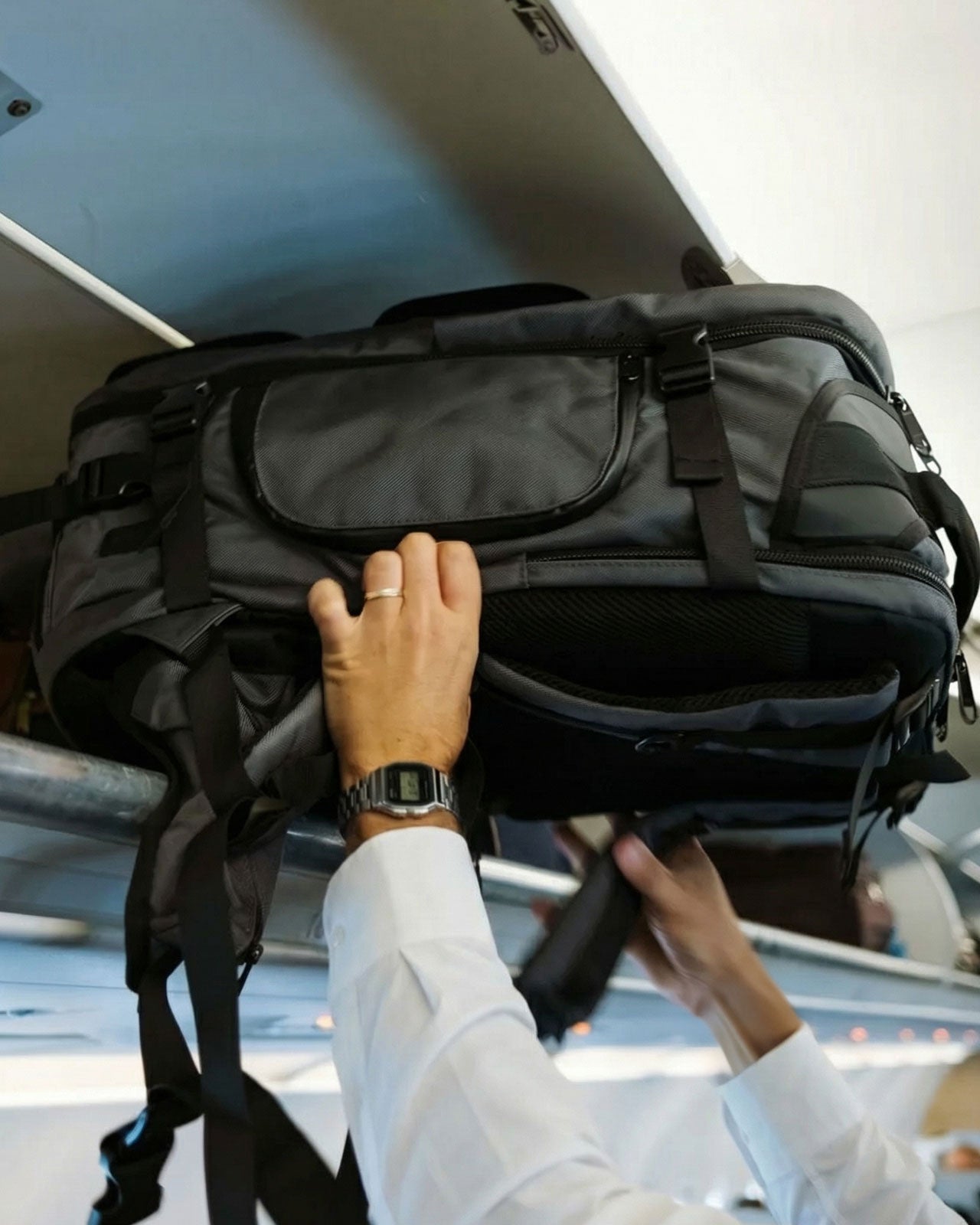 2~3泊分の荷物を詰め込んでも、キャリーケースなしでサッと頭上に収納できるサイズ感。乗り降りや乗り継ぎがぐっとスムーズになります。
