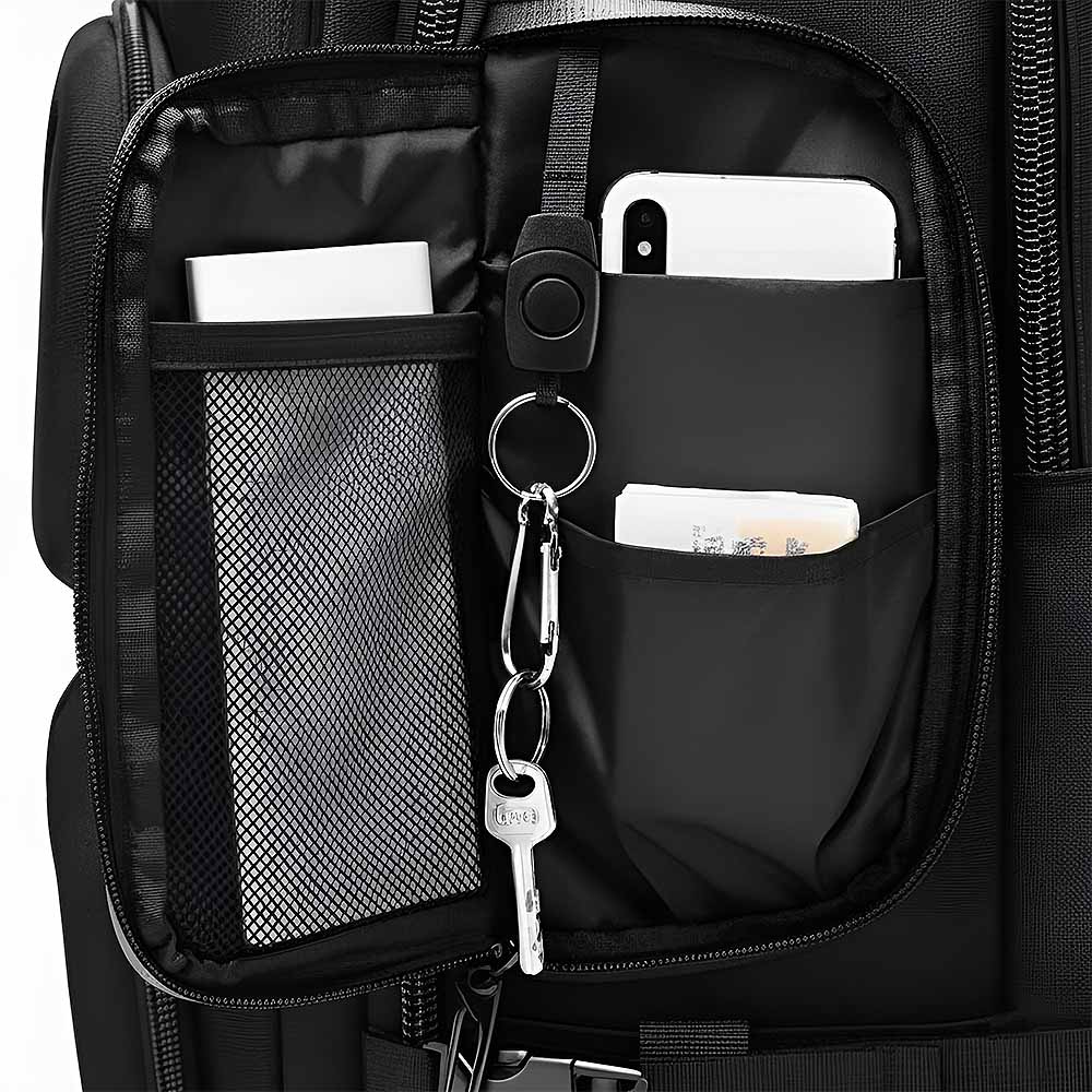 サイドポケットのキーリングで、探す手間なく一発アクセス。