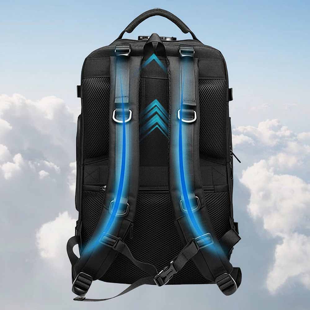 通気性を確保しながら、背中と肩への圧力を分散し、長時間の移動も蒸れなく快適にサポートします。