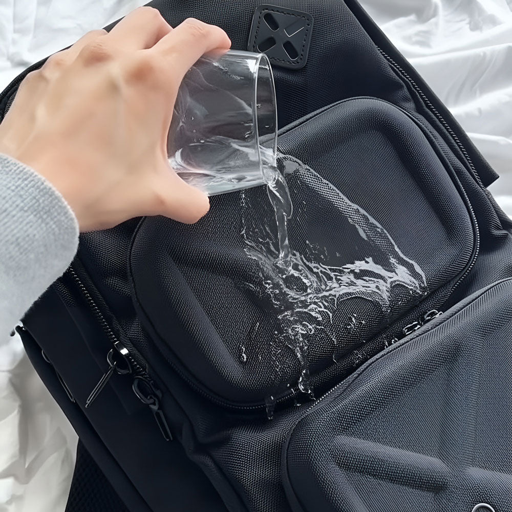 水を弾く撥水加工されたオックスフォード生地で急な雨にも対応。日常使いでの汚れや擦れにも強いタフな仕上げ。