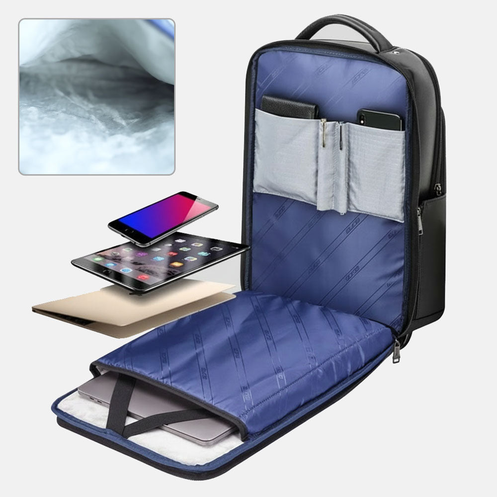 厚手パッド+フェルト内装で、PCを衝撃とキズから保護。通勤も出張も安心して持ち運べます。