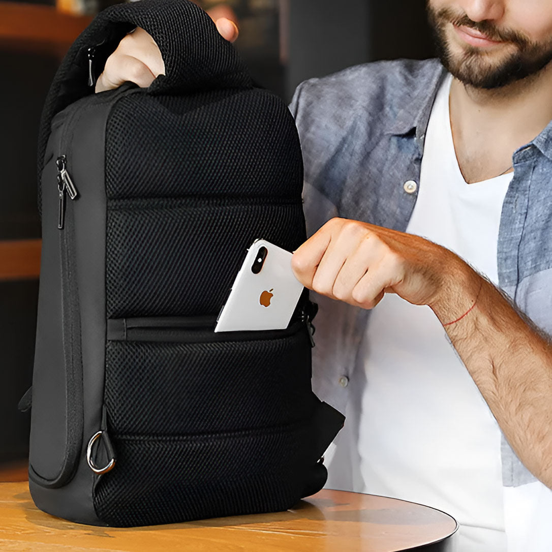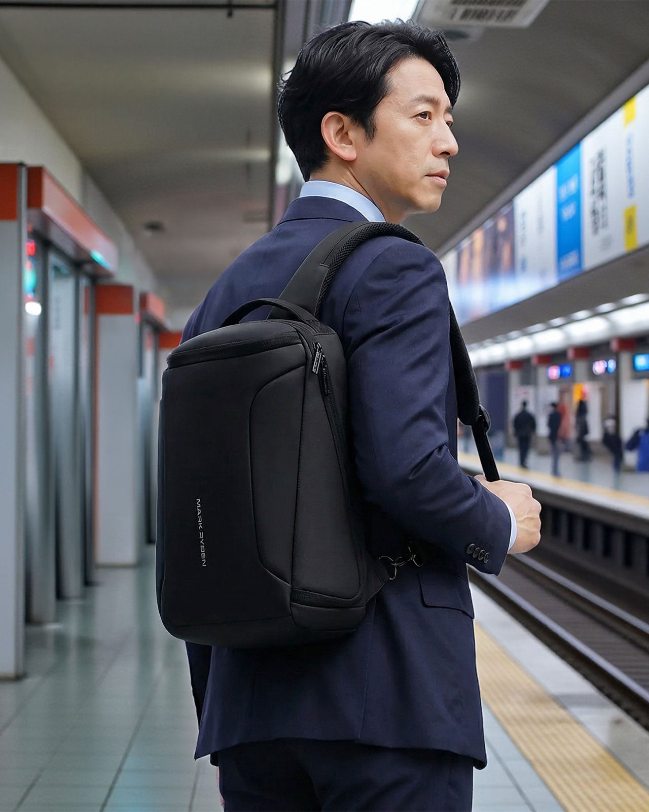 ジャケットに馴染むミニマルなデザインで、毎日の通勤をスマートに演出。満員電車でも邪魔になりません。