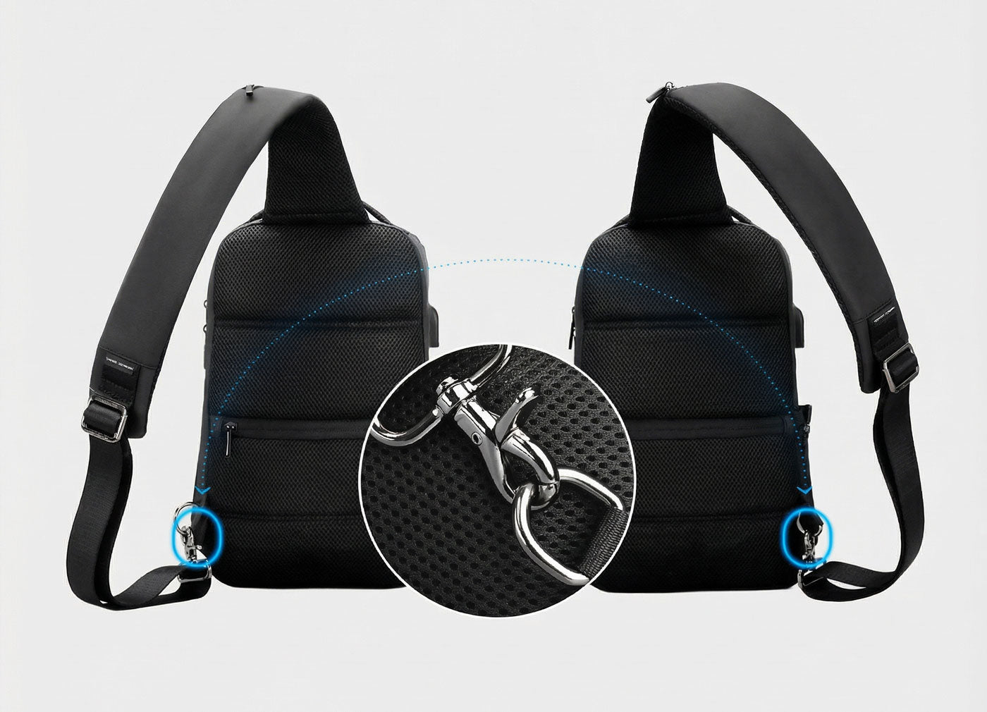 左右付け替えで肩の負担を分散。重い荷物でも疲れにくく、長時間の移動も快適です。