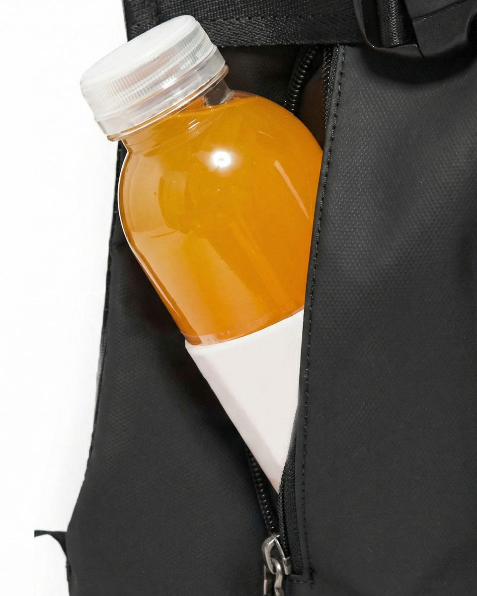 本体生地は高耐久な撥水加工を施しており、雨水をしっかり弾きます。ただし、縫い目やファスナーは完全防水ではないため、長時間の激しい雨の中でのご使用はご注意ください。